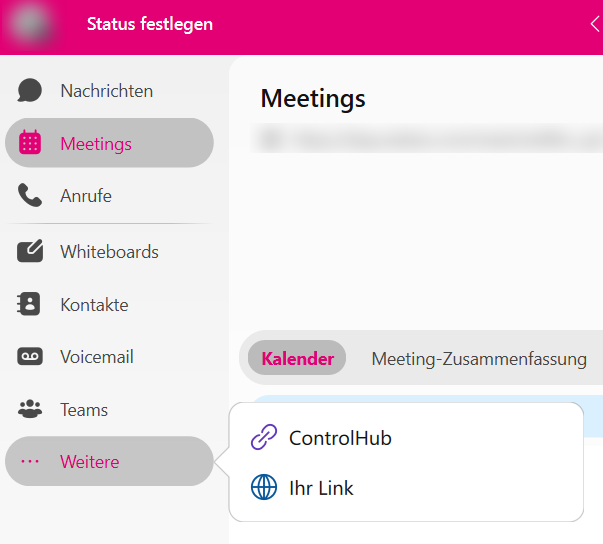 Die Einstellungen finden Sie im Control Hub unter Organisationseinstellungen → Webex-Seitenleistenanpassung → Standardansicht anpassen.
